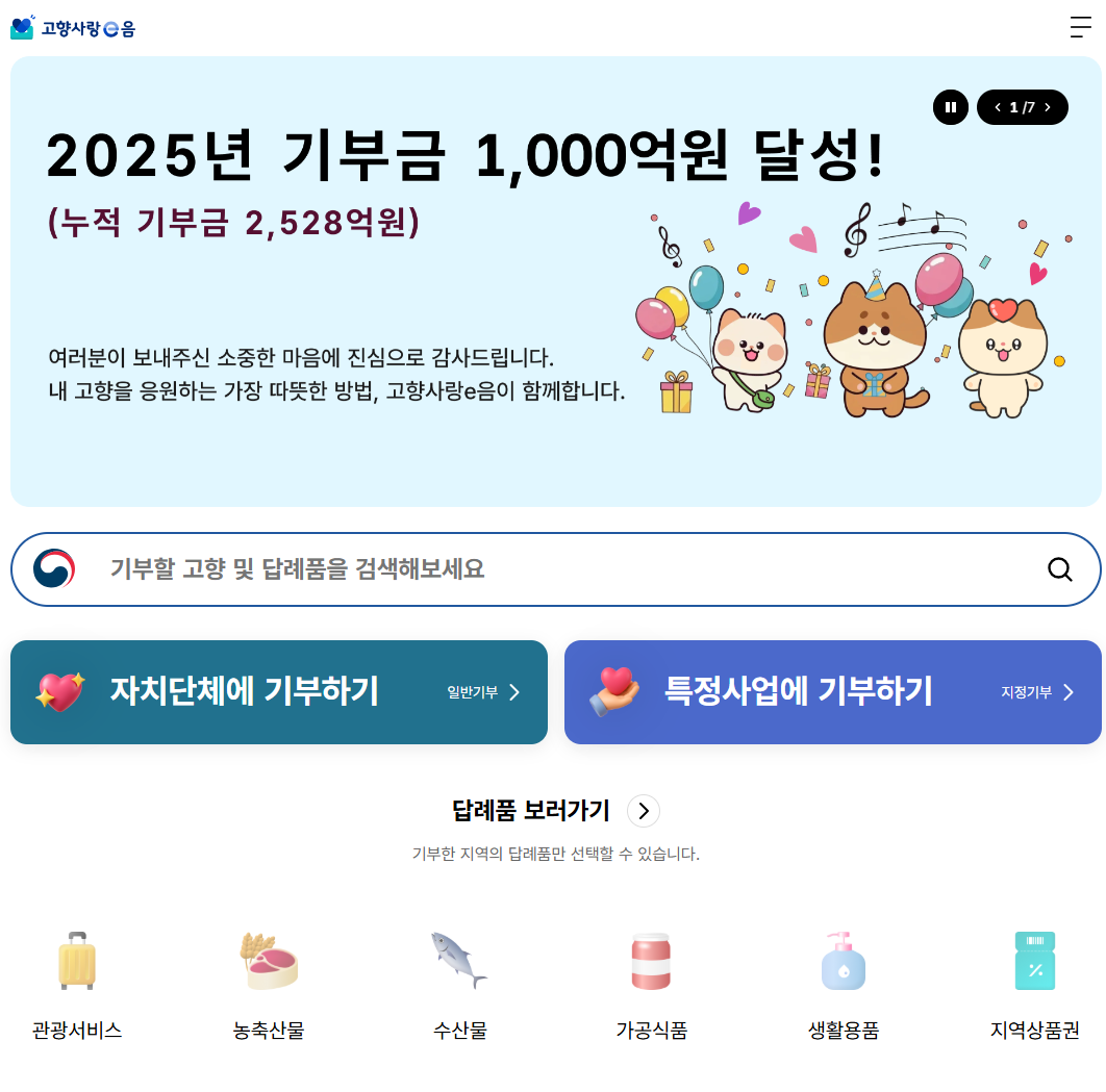 고향사랑e음 사이트가 가장 공식적인 기부 플랫폼이예요.